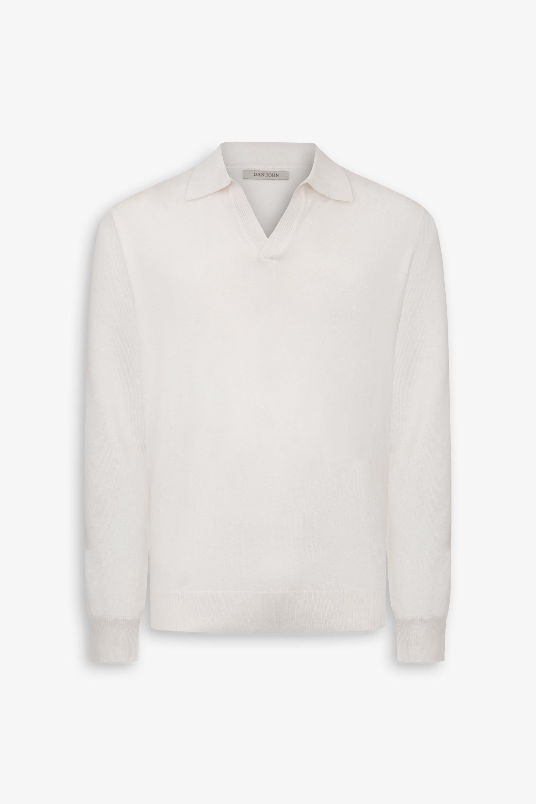 Solid color knitted polo shirt in viscose. Open collar and long sleeves.