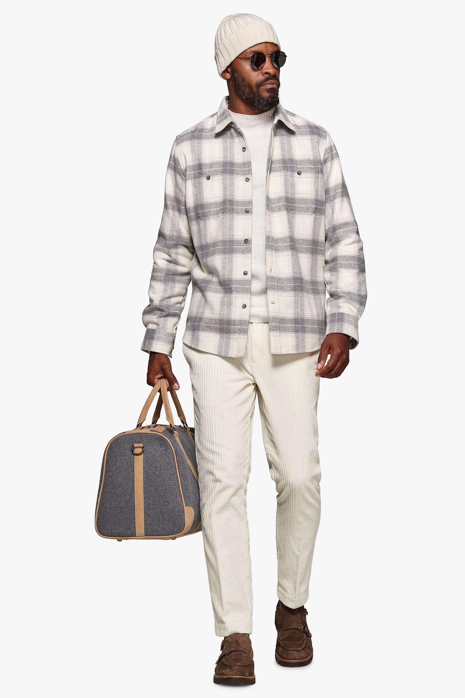 Flannel touch overshirt. Covered chest pockets, button closure. Shirt collar and cuffs.