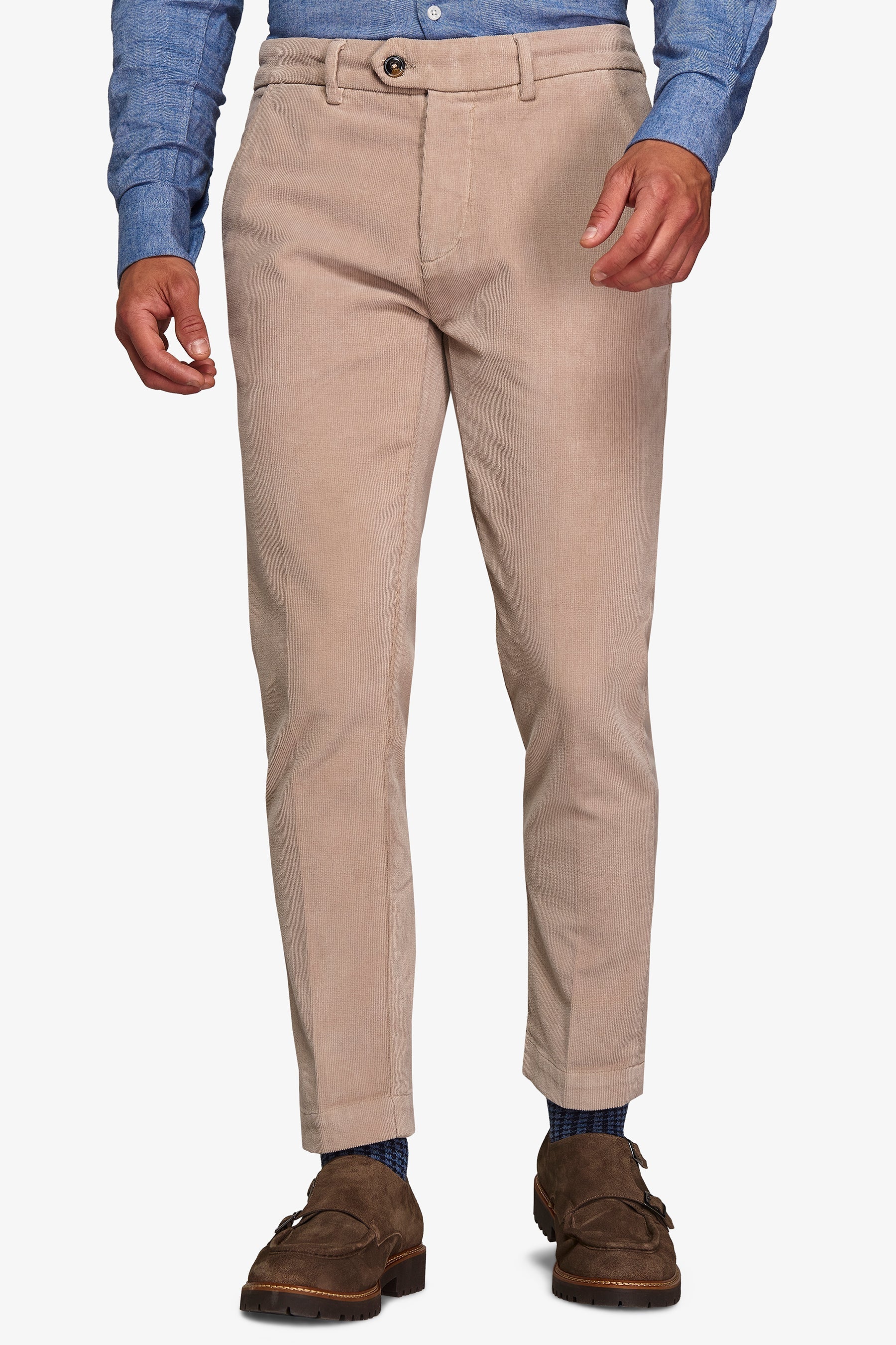 Old pinstripe velvet chino trousers. Slim fit with American pockets. Flat front. Capri bottom.