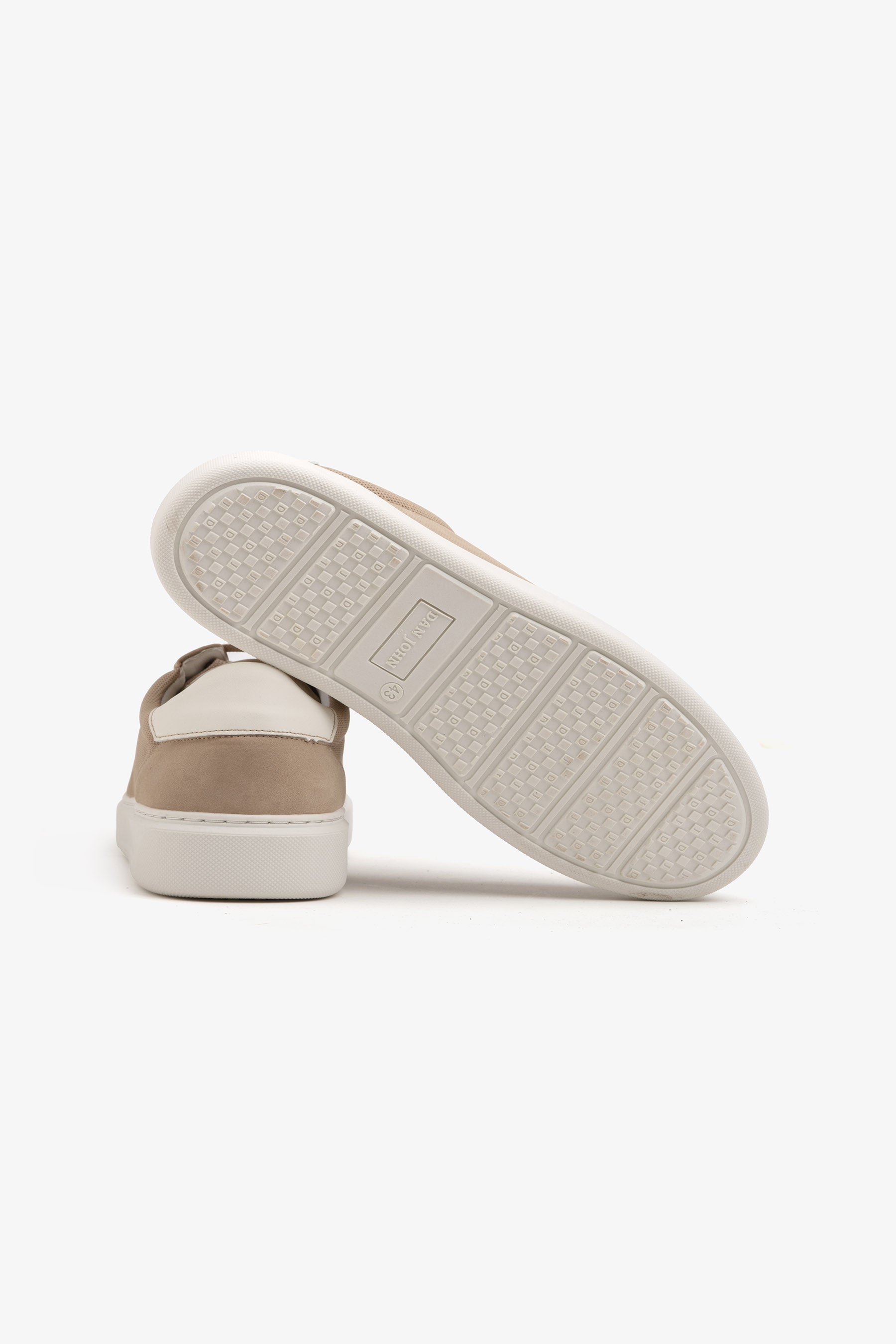 Perforated eco-suede sneakers with contrasting rubber sole.