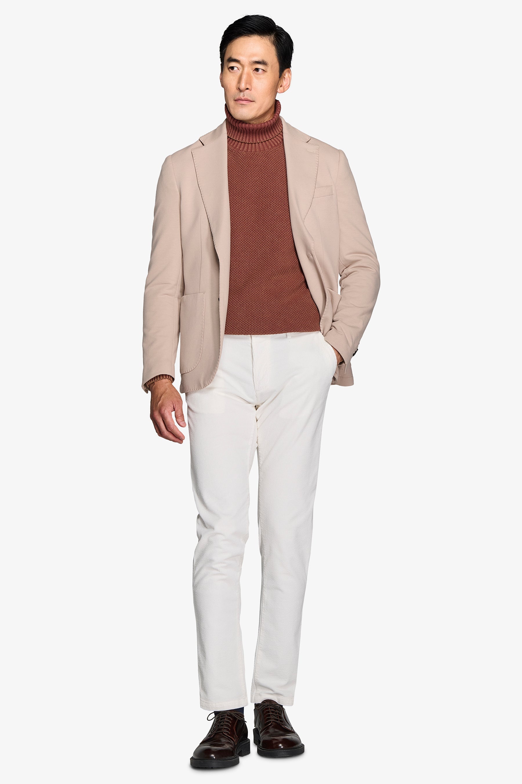 Stretch cotton jacket. Slim fit with notch lapel. Two buttons on the front. Light shoulder construction that makes the garment comfortable and with a natural look. Patch pockets. Deconstructed and unlined.