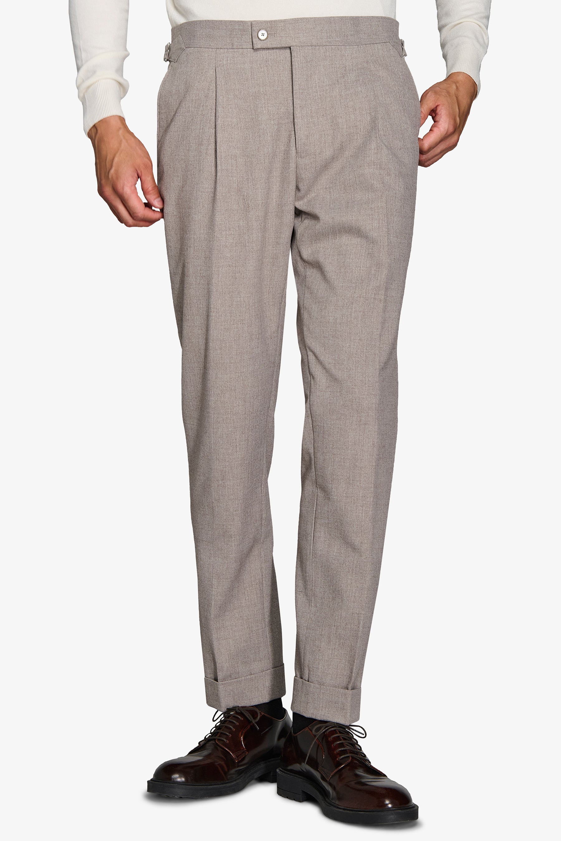 Flannel trousers with pleats. Slim line with slanted pockets.