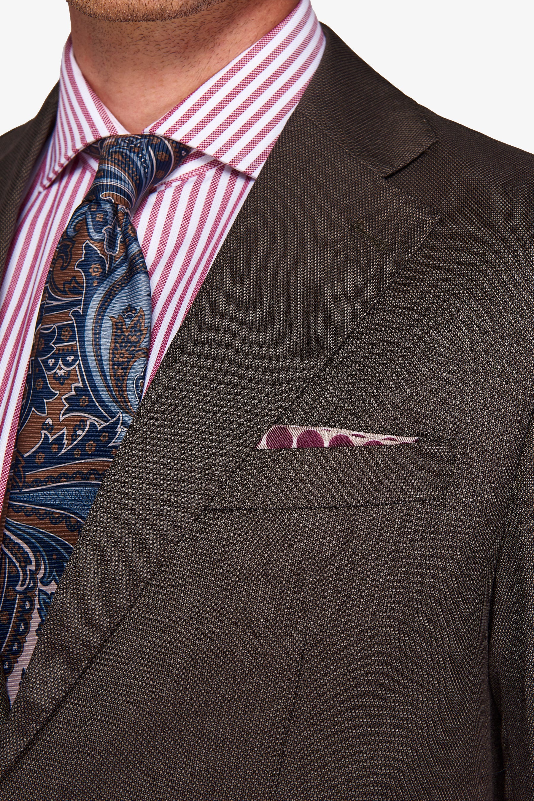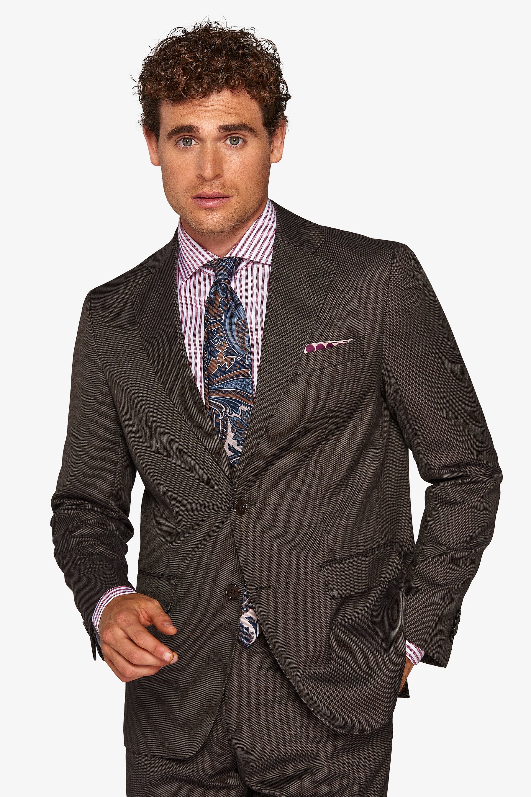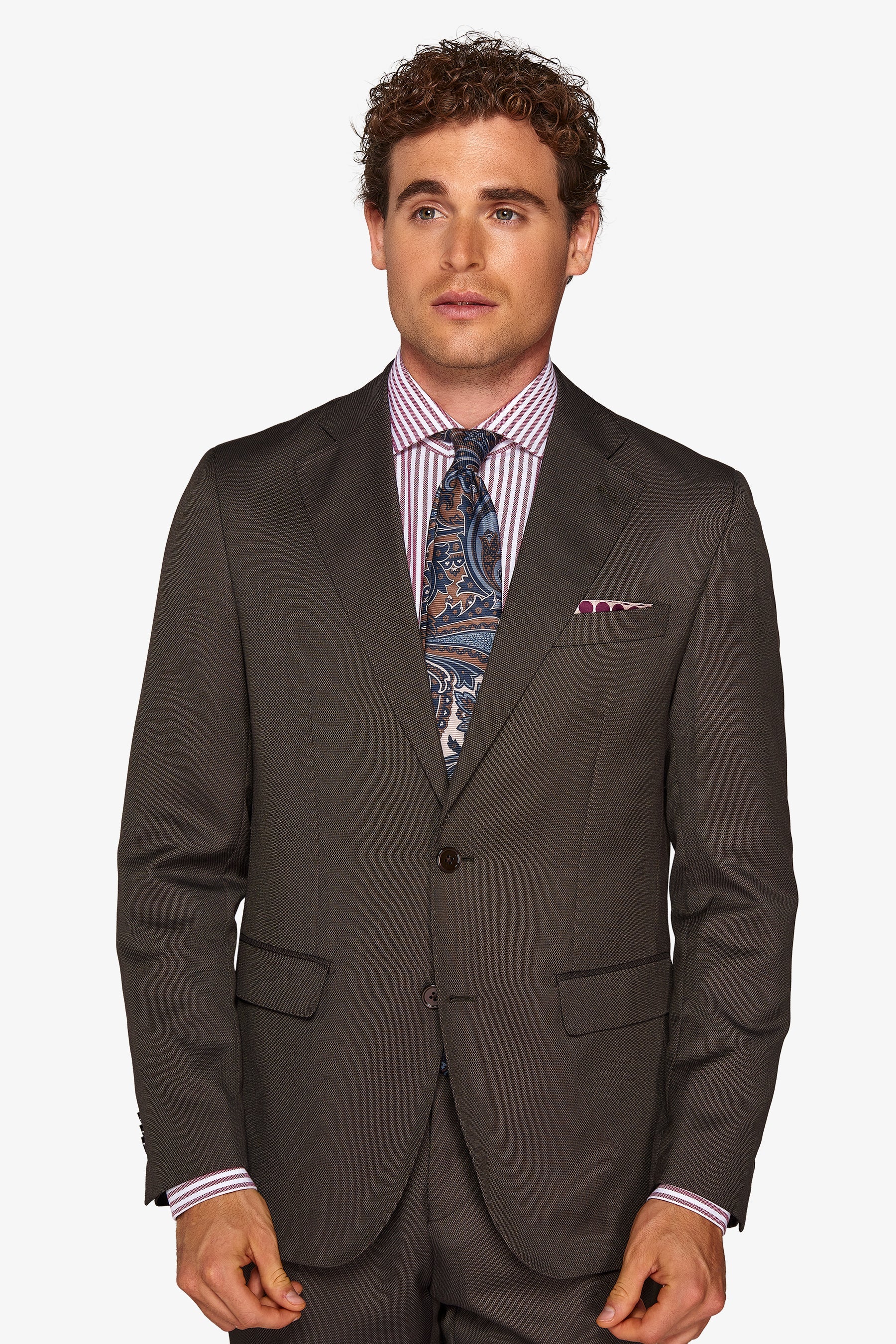 Regular bird's eye suit jacket in poly viscose fabric. Regular slim line. Two buttons and flap pockets. Lined. Side slits.