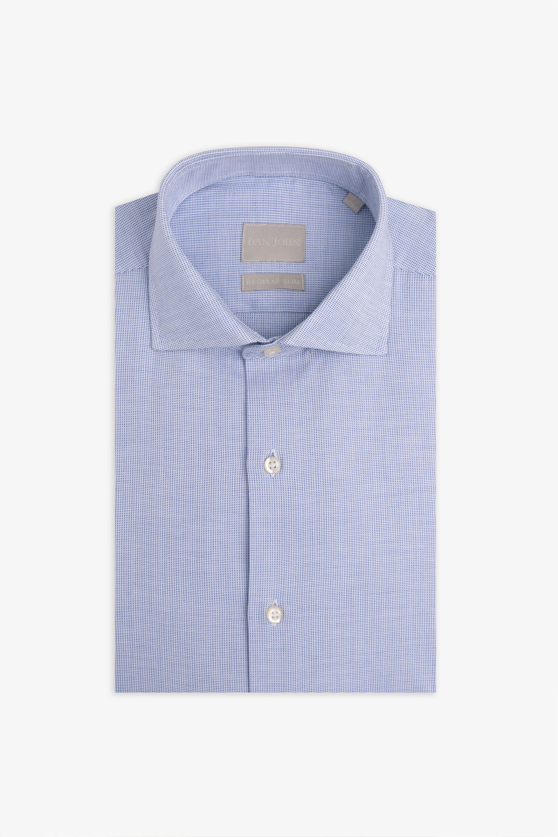 Micro-patterned cotton shirt, regular slim fit, spread collar.