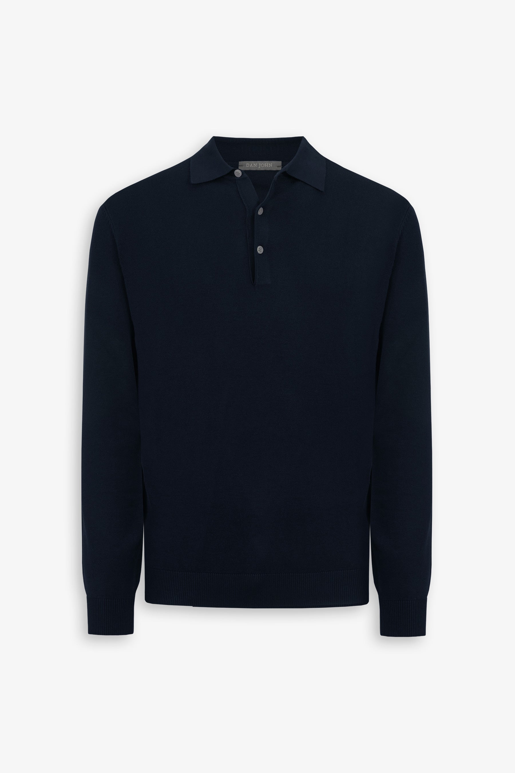 Polo shirt in stretch fabric knit with buttons. Long sleeves. Ribbed bottom and cuffs.