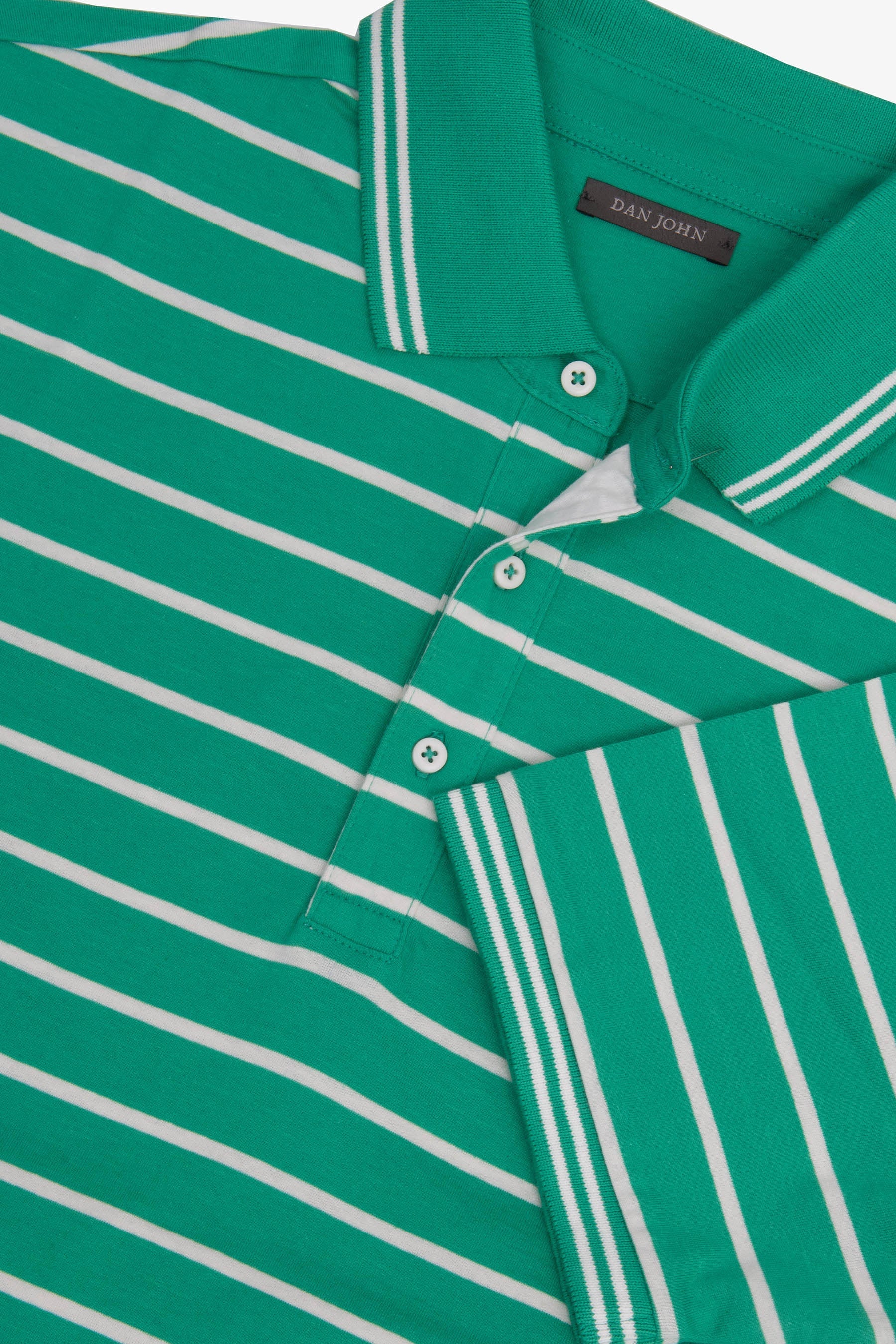 Striped jersey polo shirt with contrasting collar. Short sleeves.