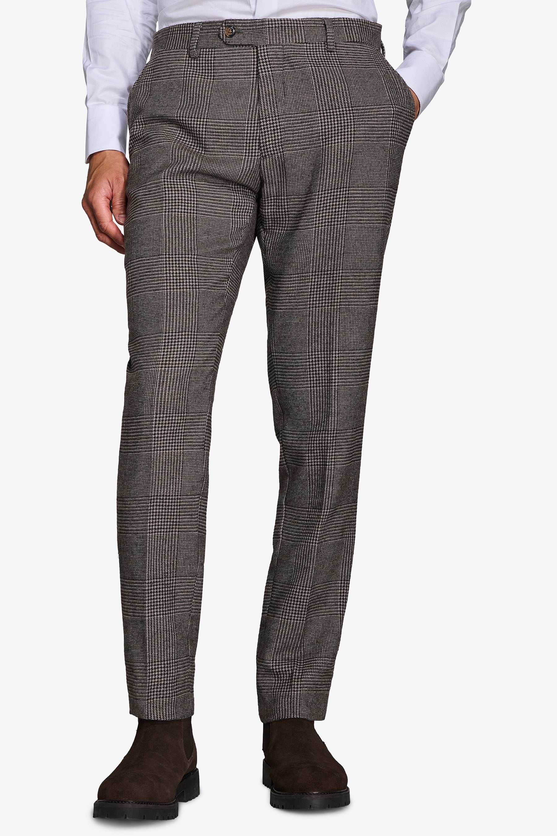 Prince of Wales suit trousers in wool blend fabric. Slim line with slant pockets. Trousers with pleats.